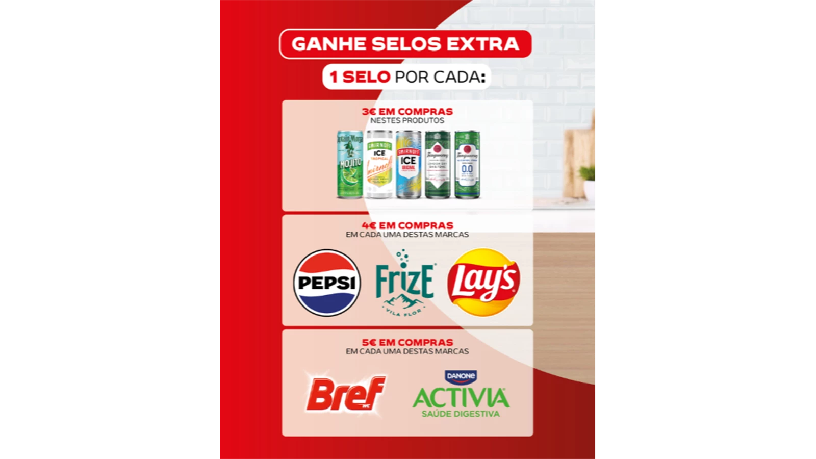 4.1.3 Durante toda a vigência da Campanha, por cada 4€ (quatro euros) em compras associadas ao Cartão Continente, efetivamente pagas, numa das Lojas supra indicadas, em artigos das marcas: “Lays”, “Pepsi” e “Frize”, selecionadaos exclusivamente para a Campanha, e que se encontram discriminadaos no Anexo II do presente Regulamento.