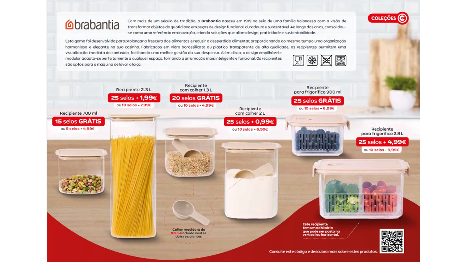 11.2  Nas Lojas, com exceção do Continente Online, existem expositores próprios, devidamente identificados com a Campanha “Coleções Continente Recipientes de organização Brabantia” e com as referências disponíveis.
