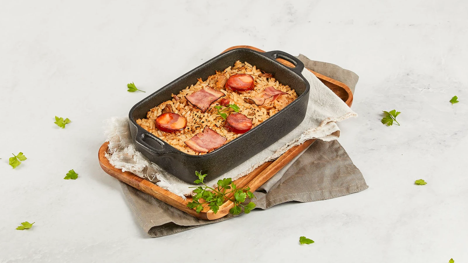 com 2 acompanhamentos à escolha: Arroz Basmati, Batatas Fritas às rodelas e/ou Salada