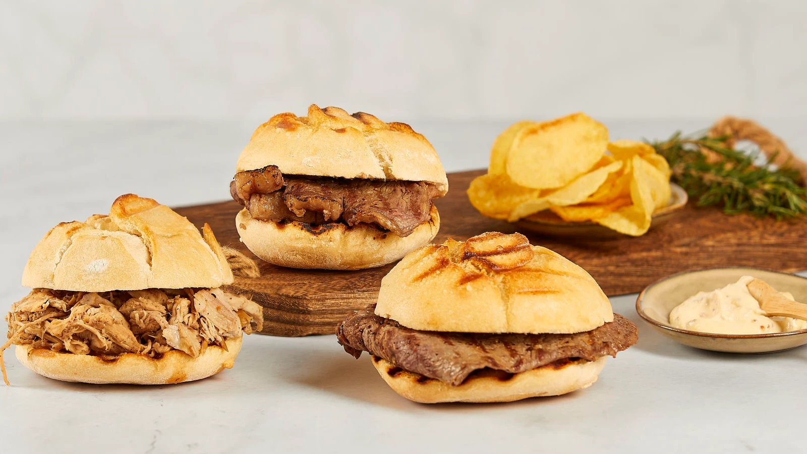 em Bola Rústica com Batatas Fritas às rodelas e Maionese de Mostarda