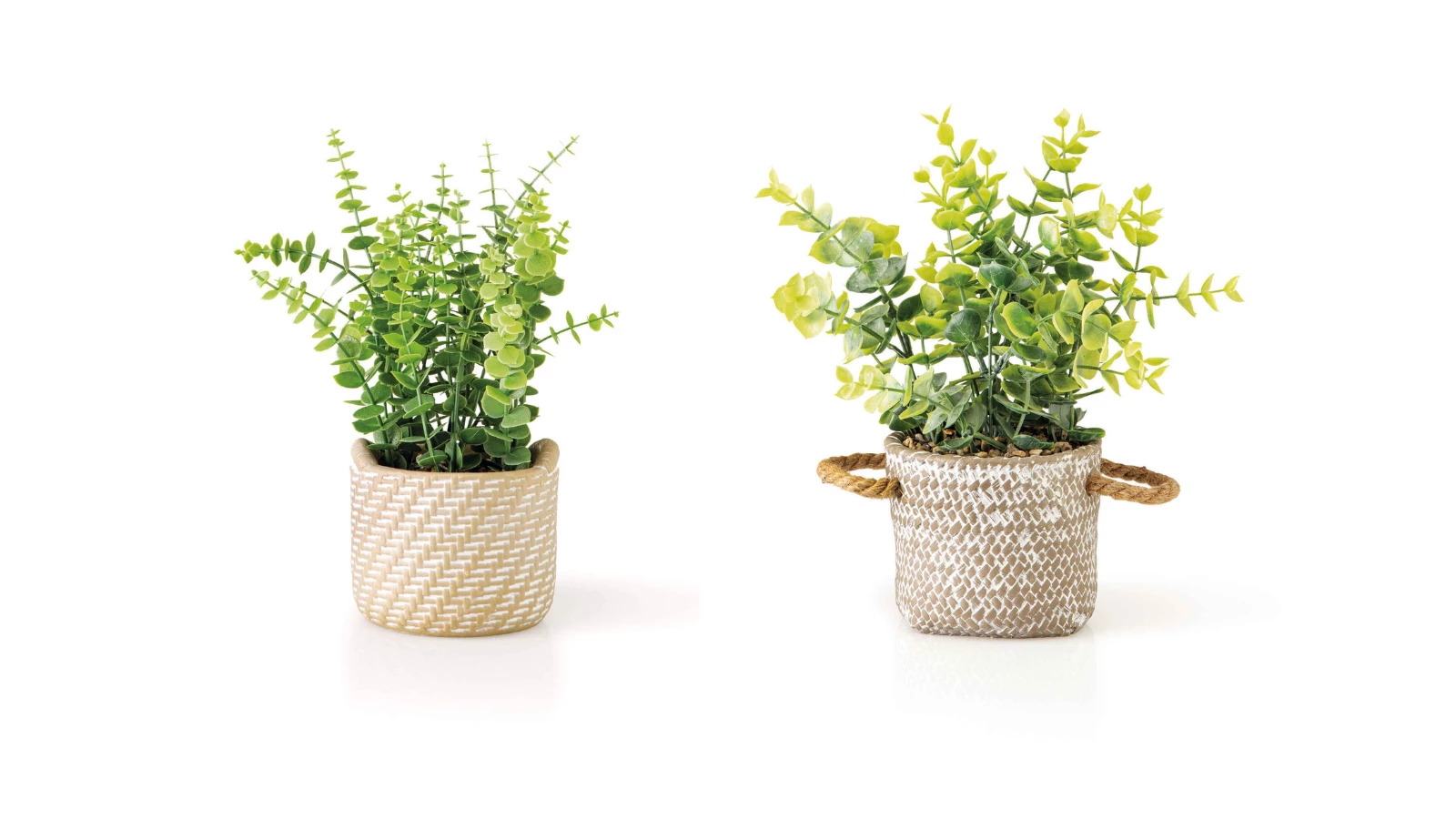 Estas duas opções de plantas artificiais com vaso da marca KASA são excelentes exemplos. A primeira planta tem 40cm de altura e a segunda planta tem 49cm.