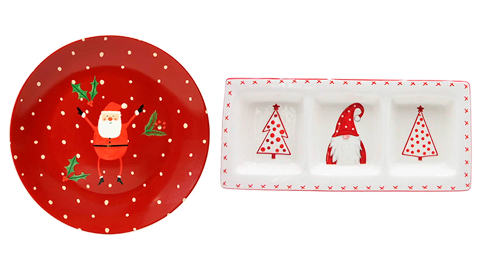 Para contrastar com a simplicidade do centro de mesa, aposte em loiça com desenhos típicos da época, como pratos com o Pai Natal. Para servir entradas ou aperitivos durante a consoada, escolha um prato com divisórias ou uma travessa retangular. Já para servir os doces de Natal tradicionais, prefira pratos de sobremesa temáticos.