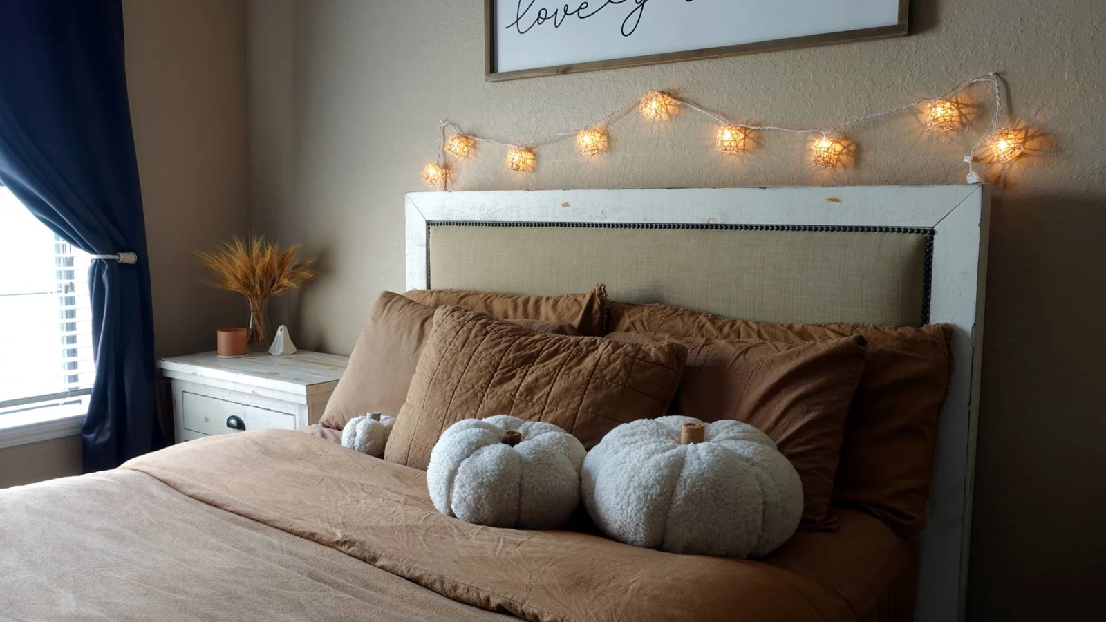 Pode simplesmente substituir as capas das suas almofadas decorativas por umas laranja e adicionar uma manta no mesmo tom ao sofá ou à cama, sem qualquer padrão referente ao Halloween.