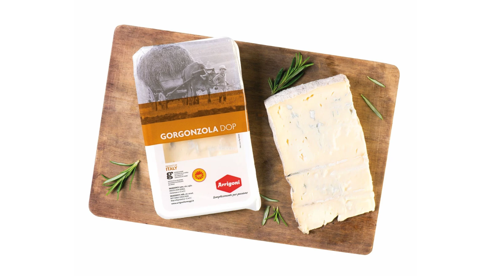 De cor marfim e com estrias verde-azuladas, o queijo Gorgonzola é um dos mais importantes queijos italianos feitos com leite inteiro (leite gordo) de vaca pasteurizado.