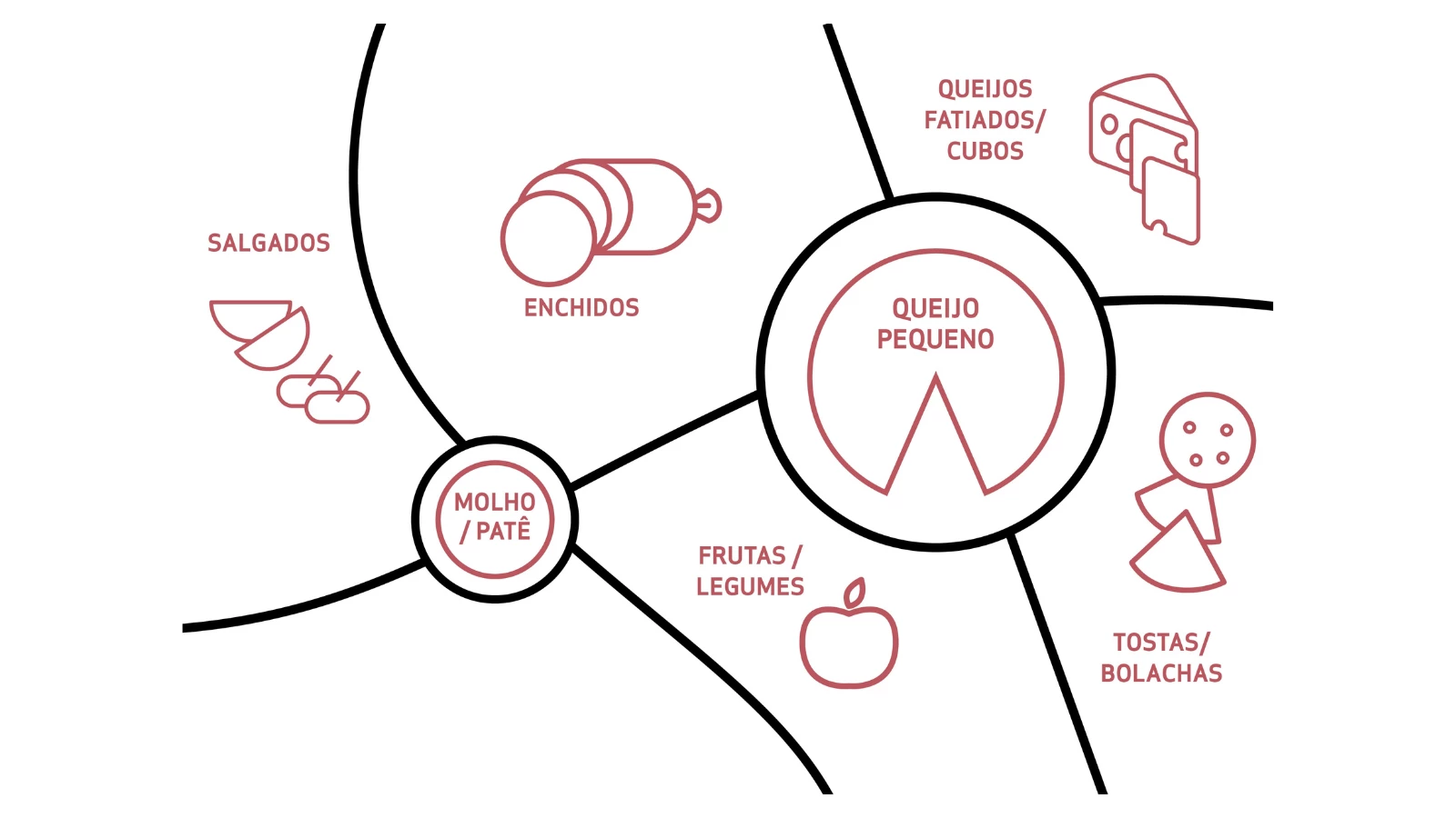 • Tonalidades, dos queijos e dos restantes alimentos.
