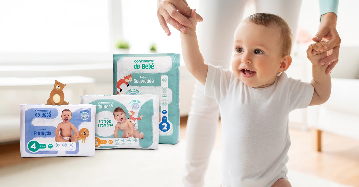 Além da gama Proteção & Conforto, conheça as outras fraldas Continente do Bebé: