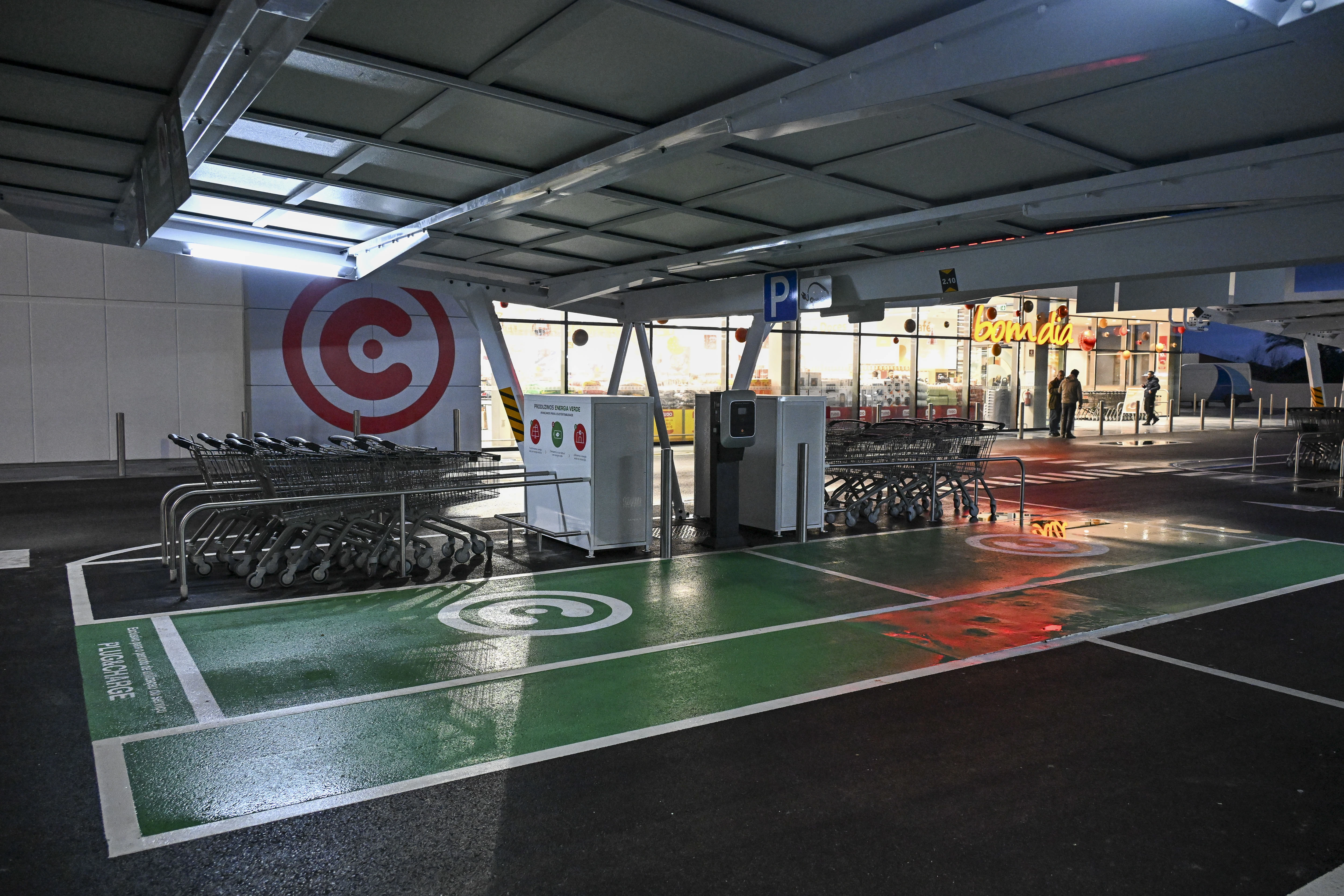 Esta loja Continente disponibiliza um parque de estacionamento a todos os seus clientes com lugares destinados a pessoas com mobilidade condicionada e lugares reservados para famílias.