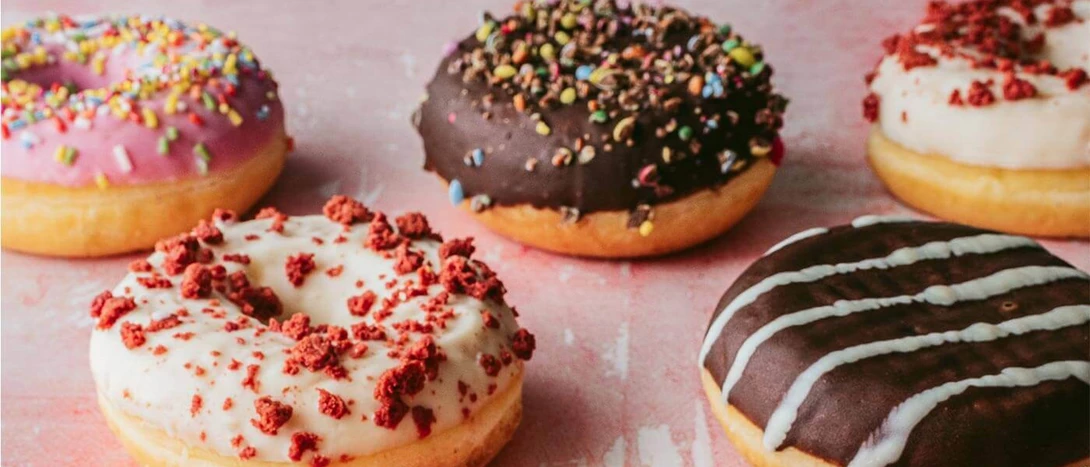 O “Boston Kreme” é recheado com creme e com topping de chocolate. Já o "Strawberry Sprinkle" tem um recheio de morango e topping colorido.