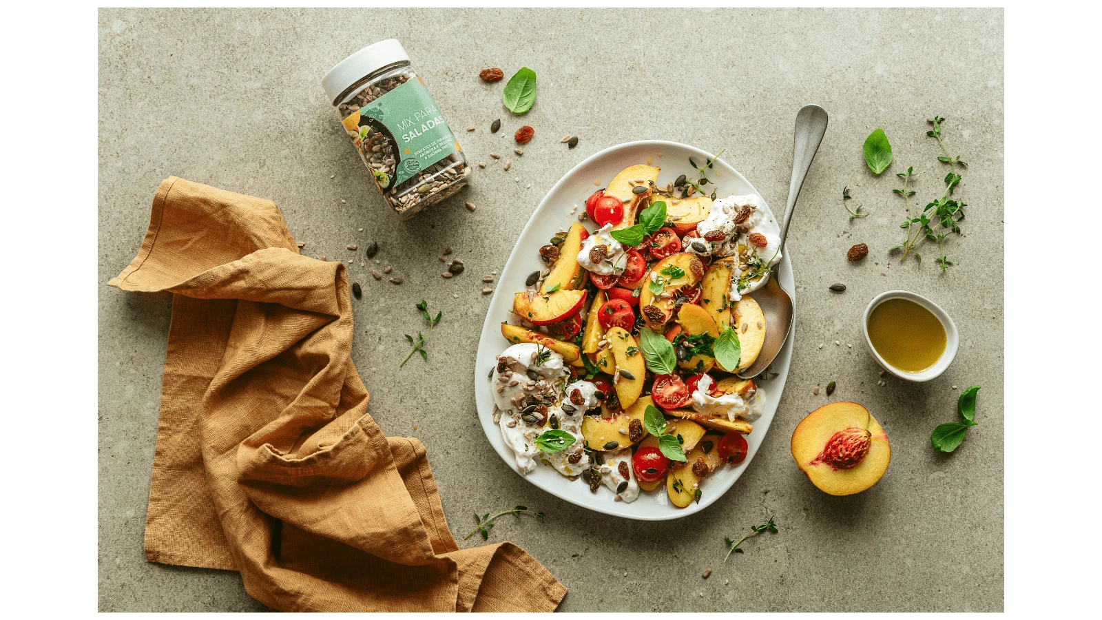 O Mix Saladas Rosa, com sementes de abóbora, miolo de noz e maçã natural, é baixo em sal, rico em fibras e uma boa fonte de energia, combina na perfeição com esta receita. Para além disso, vai enriquecer a sua salada, uma vez que está repleto de nutrientes.