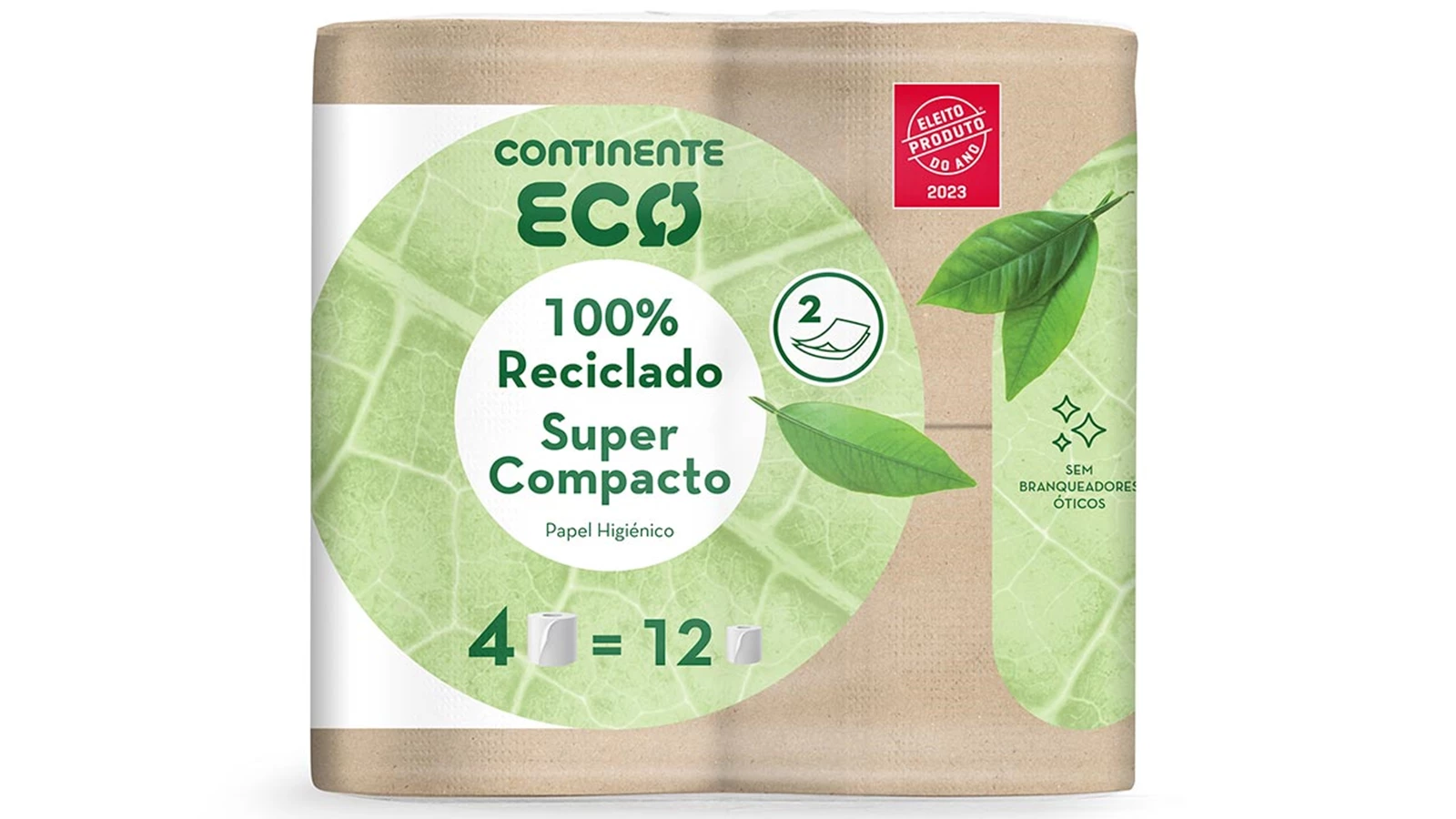 A marca Continente ECO apresenta uma vasta gama de produtos ecológicos de limpeza e higiene pessoal, que combinam sustentabilidade, eficácia e acessibilidade. O Papel Higiénico 100% Reciclado, presente nesta gama, foi um dos produtos vencedores do prémio “Produtos do Ano” 2023. Estes rolos de papel higiénico são feitos com papel 100% reciclado de cartão pós-consumo, nomeadamente, de embalagens descartáveis de sumos. Durante a sua produção, não são usados branqueadores – daí apresentar uma cor mais natural e acastanhada. É um papel higiénico e suave, resistente e sustentável.