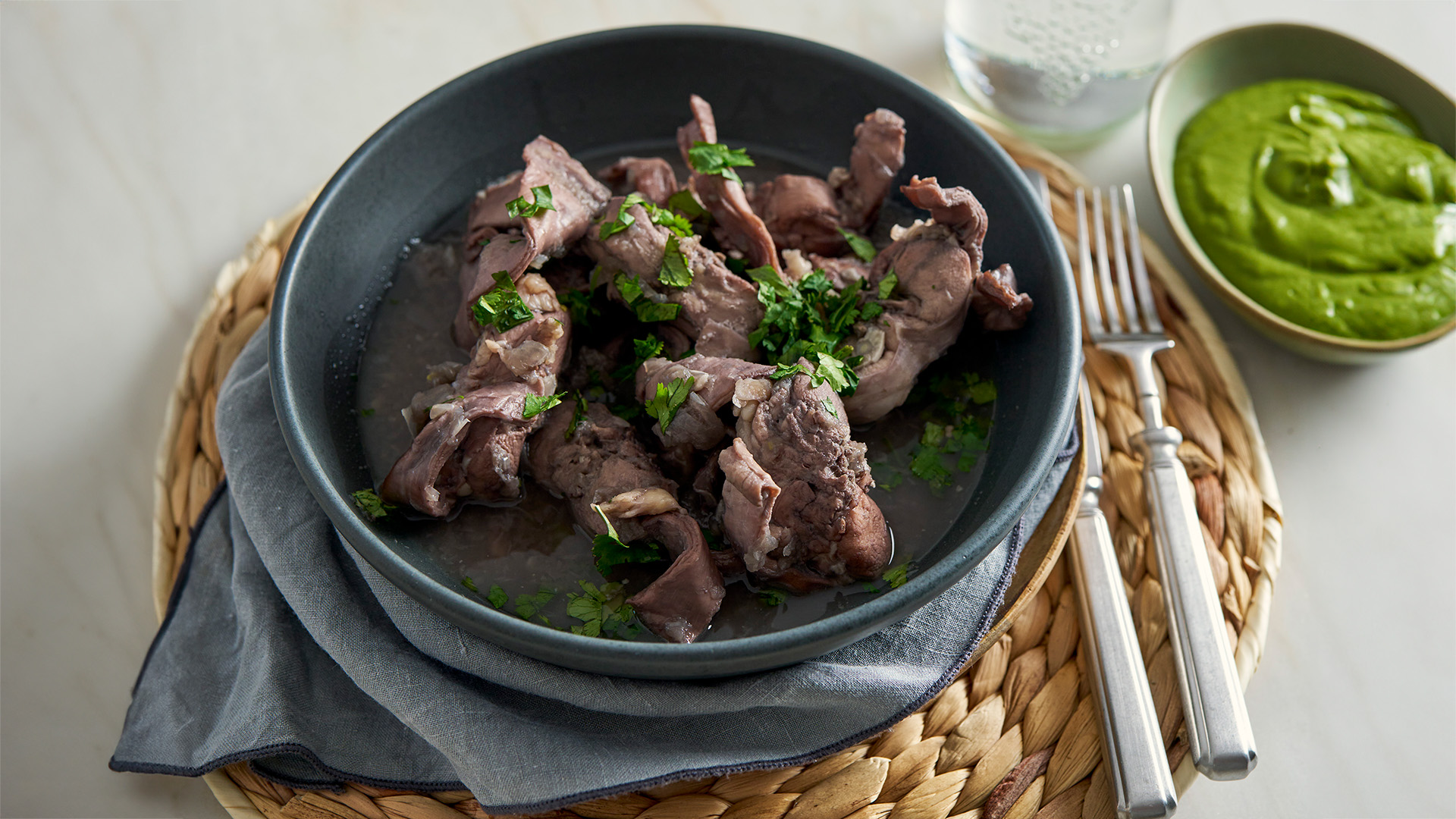 Sirva o puré de cenoura e o coelho estufado. Decore com tomilho a gosto.