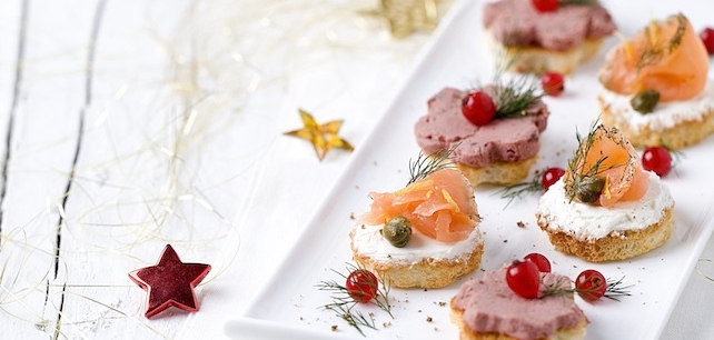 Espalme ligeiramente as fatias de pão e recorte-as utilizando moldes de Natal. Leve-as ao forno pré aquecido a 160º C cerca de 2 minutos de cada lado.