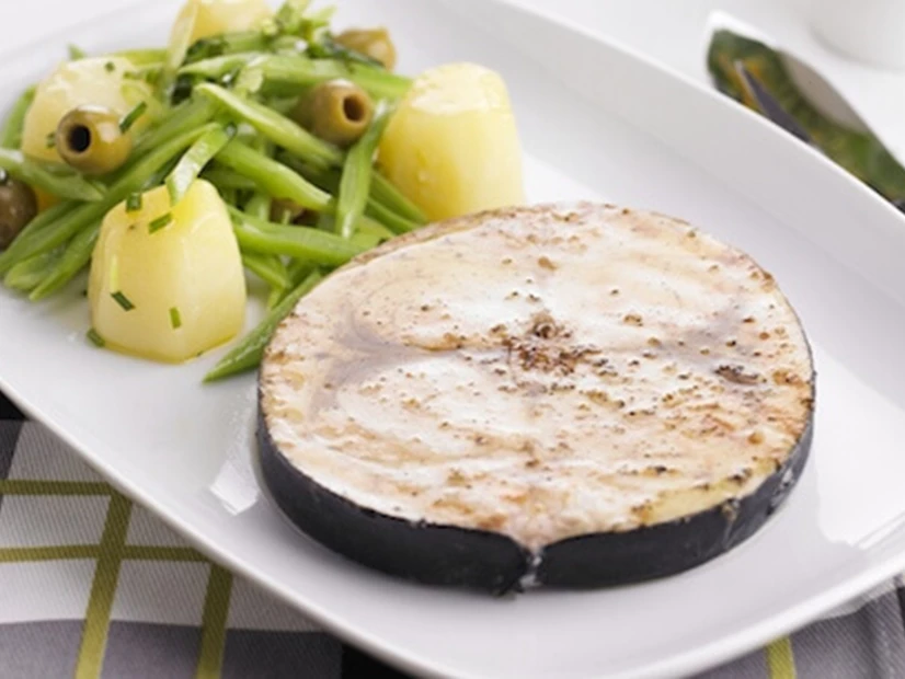 Cozinhe o peixe numa grelha ou numa frigideira antiaderente. Coloque numa travessa o peixe, as batatas, o feijão e tempere com o restante vinagrete.