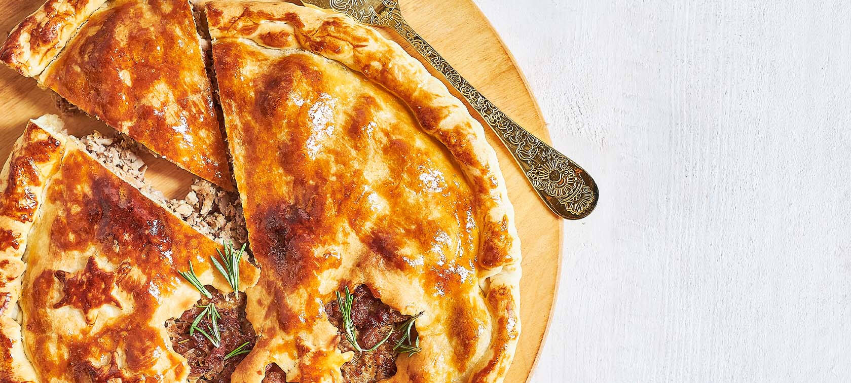 • Em paus de espetada, alterne cubos de peru e bacon com triângulos de ananás.
