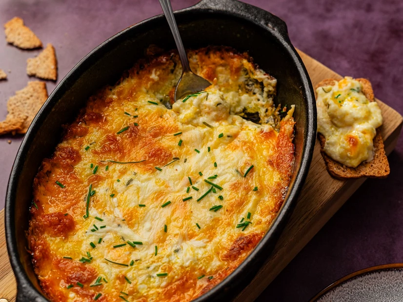 Sirva o seu fondue de queijo polvilhado com cebolinho picado e acompanhado com tostas integrais.