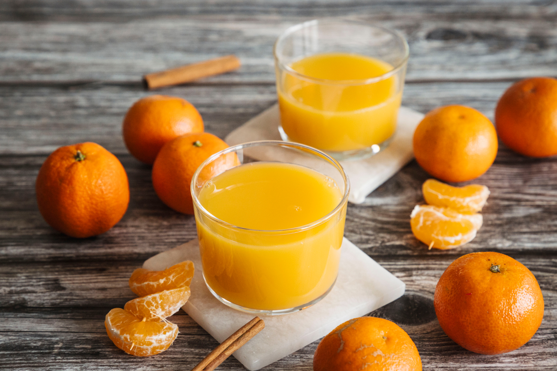 Junte o sumo de tangerina e o de limão e volte a misturar bem. Acrescente a manteiga e leve ao lume médio.