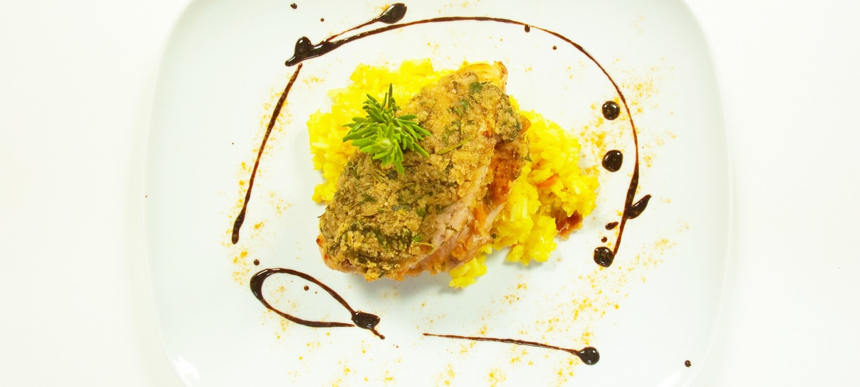 Sirva o frango recheado com o arroz e decore com alecrim.