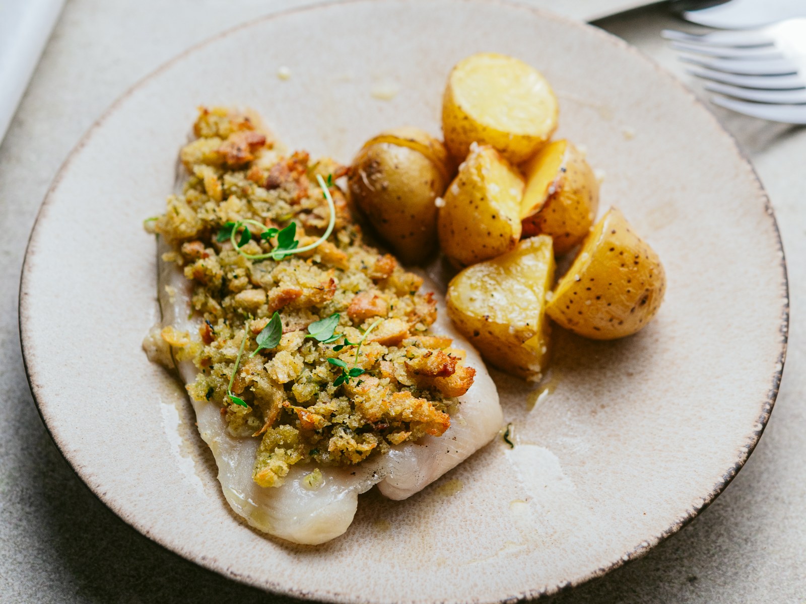 Tempere a perca com sal, pimenta, o sumo limão e orégãos.