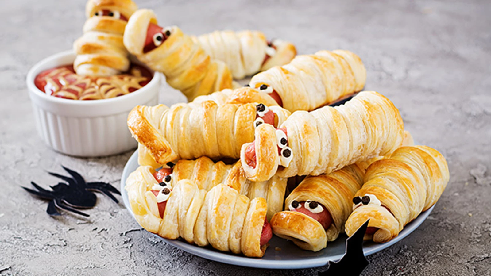 As múmias de salsicha são uma ótima sugestão de entrada para surpreender e assustar os convidados na noite de Halloween. Para isso, só tem de seguir esta receita de folhados de salsicha em forma de múmia. No fim, adicione umas pintinhas de mostarda para fazer os olhos e tornar esta entrada ainda mais assustadora.