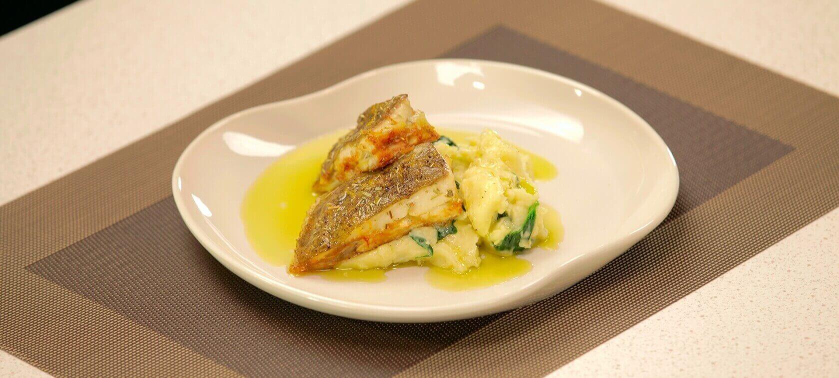 Sirva o salmão em sous vide sobre uma cama de espinafres. Decore com funcho e um fio de azeite.