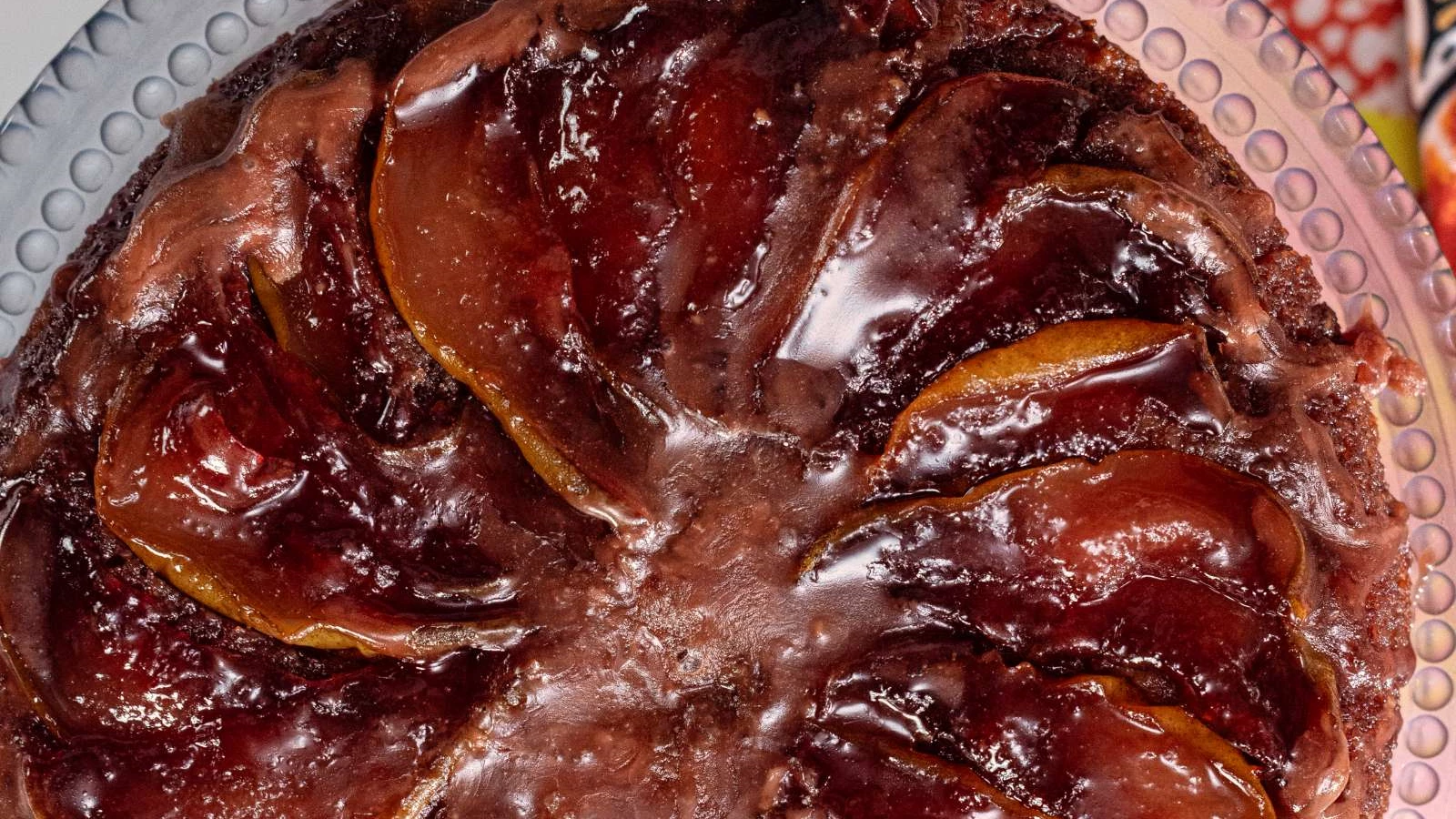A tarte Tatin de pera une a doçura da pera com o sabor profundo do caramelo. Esta versão conta com toque de vinho tinto e sabor a canela que a diferencia e a torna ainda mais difícil de resistir. Para a noite de passagem de ano, existem outras sobremesas com esta fruta que também vale a pena provar, como peras bêbedas e crumble de pera.