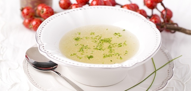 Sirva a sopa de castanha e decore com natas culinária e pimenta.