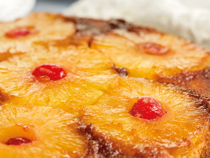 Incorpore a calda do ananás e bata mais 2 minutos na velocidade 4. Com a ajuda da espátula, solte a massa acumulada na parede do copo. Adicione a farinha e o fermento e programe 2 minutos na velocidade 3. Se necessário, termine de envolver com a espátula.