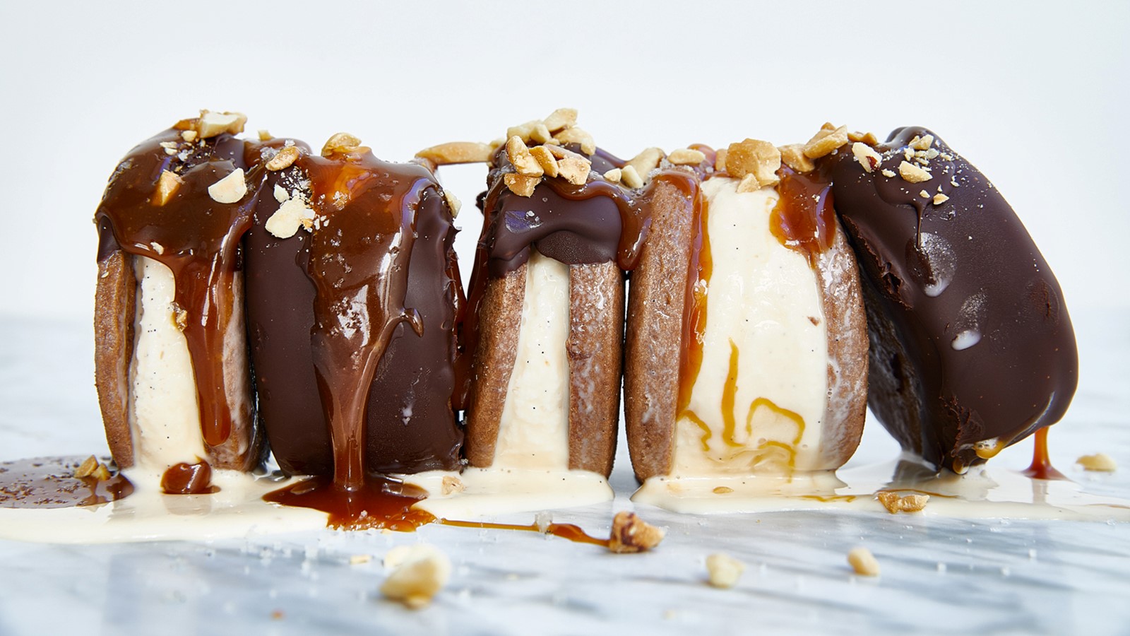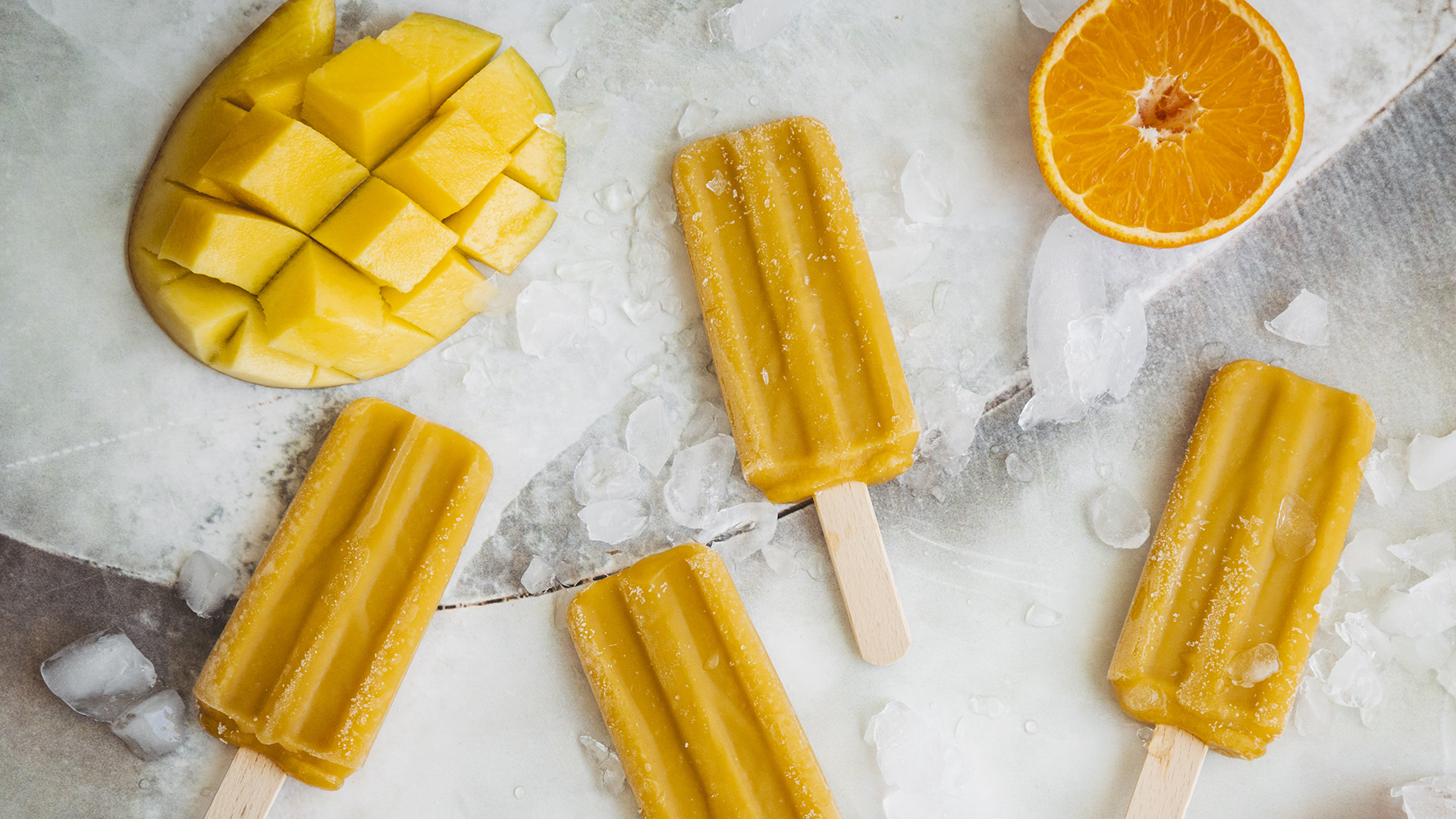Parta o gelado em pedaços e coloque‑os no copo, programando 15‑30 segundos na velocidade 5, sem parar de mexer com a espátula.