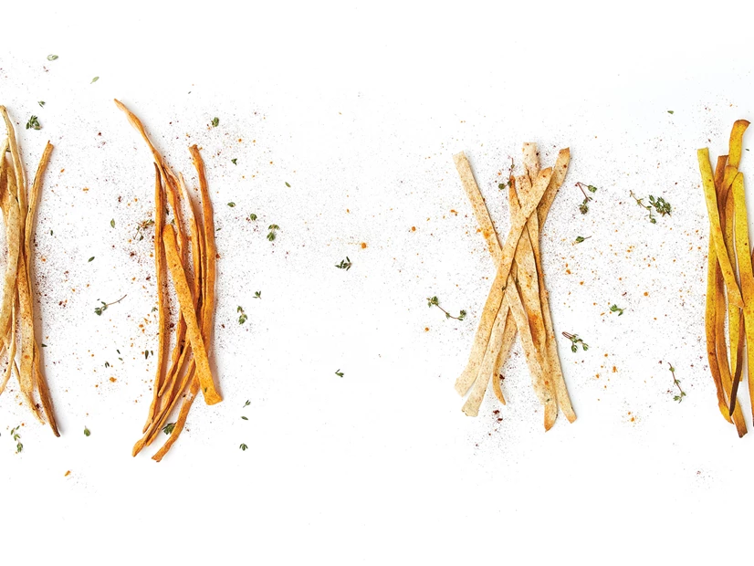 Transfira a massa para uma superfície enfarinhada e estique com o rolo da massa até obter uma espessura de aproximadamente 5 mm. Corte tiras verticais e coloque num tabuleiro forrado com papel vegetal.