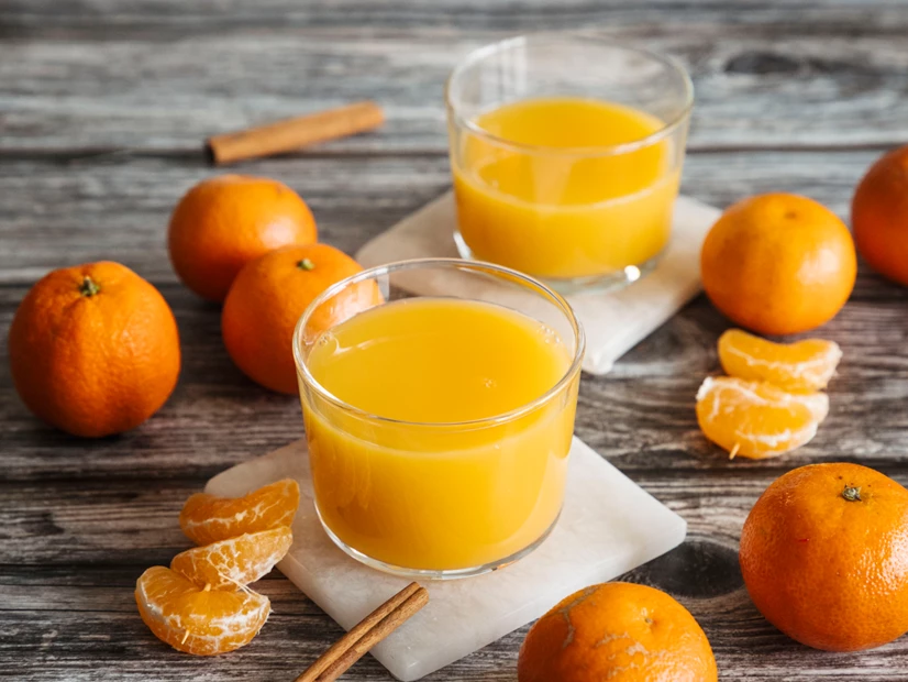 Coloque no copo as tangerinas lavadas e cortadas em pedaços (com casca).