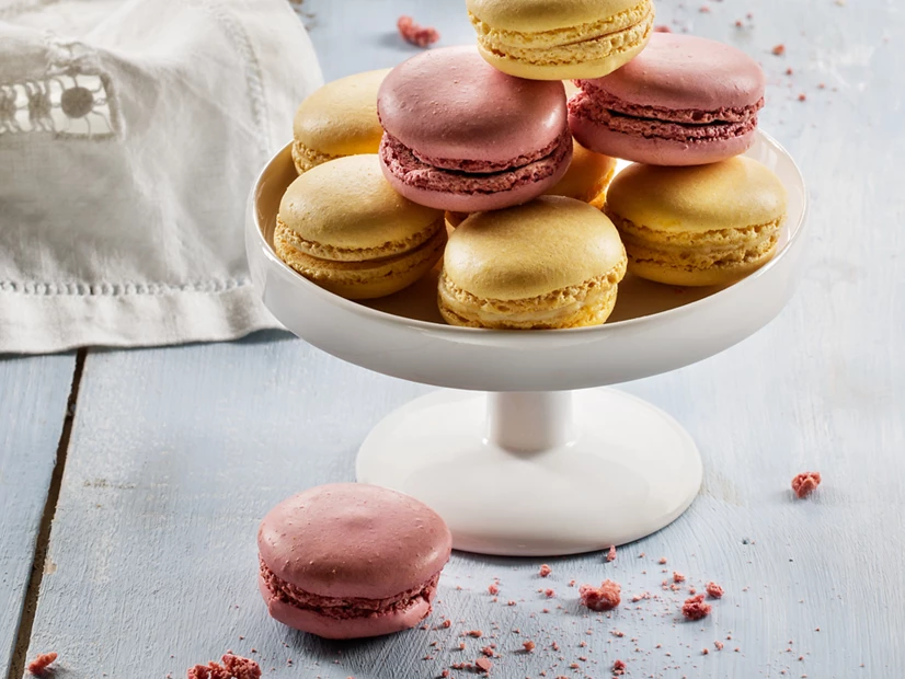 Leve ao forno durante 13 a 15 minutos. Deixe arrefecer completamente (para que descolem facilmente do papel vegetal). Recheie pares de macarons a gosto.