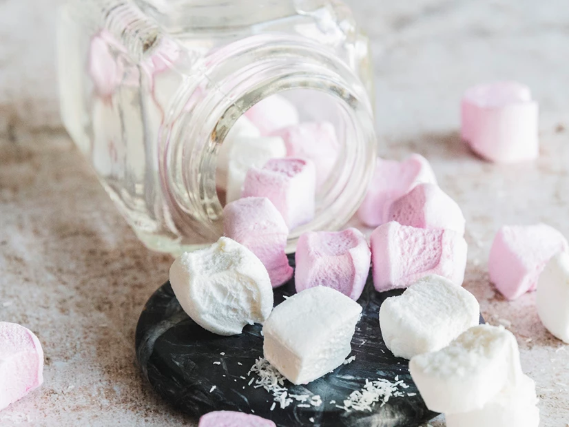 Desenforme sobre papel vegetal polvilhado com açúcar em pó (ou coco ralado). Com uma faca molhada bem afiada, corte em quadrados pequenos. Envolva bem os marshmallows em açúcar em pó (ou coco ralado).