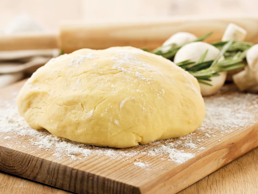 Retire a massa do copo (polvilhe as mãos com farinha, se necessário) e coloque‑a num recipiente coberto com um pano.