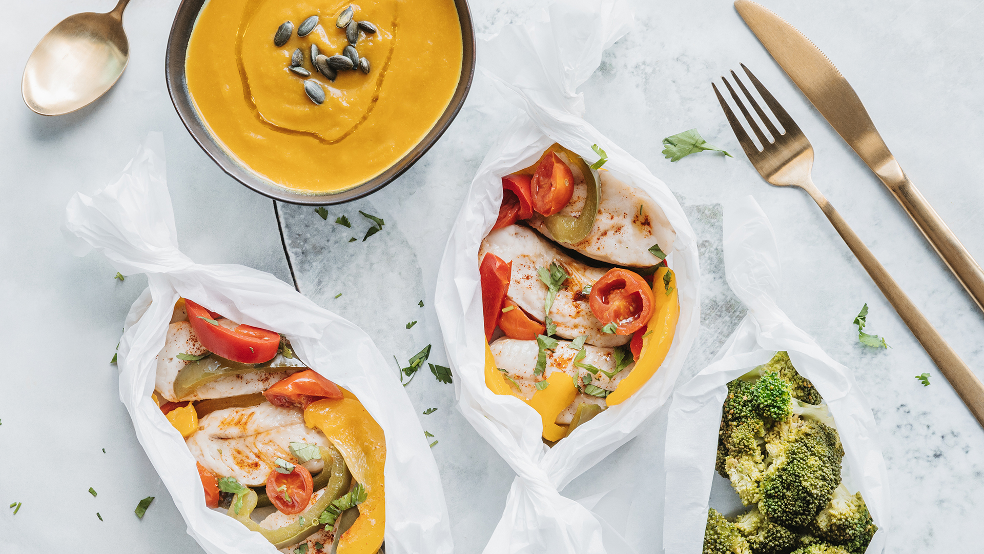 Adicione a água, o vinho, o caldo de marisco, sal e piripíri a gosto. Monte a bandeja de vapor sobre o copo e programe a Rotação Inversa na Função Vapor durante 27 minutos.