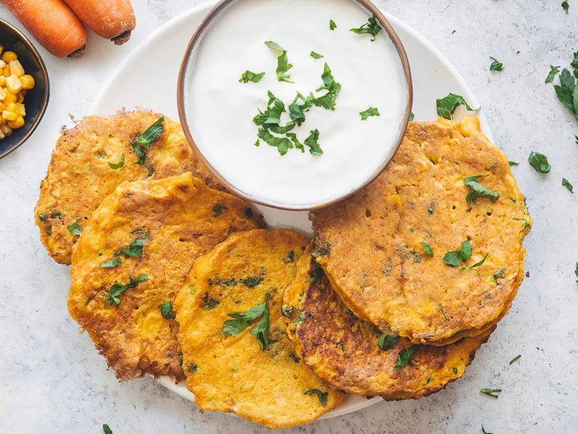 Aqueça uma frigideira antiaderente, unte-a com um pouco de azeite. Deite montinhos de massa e deixe cozinhar de ambos os lados.