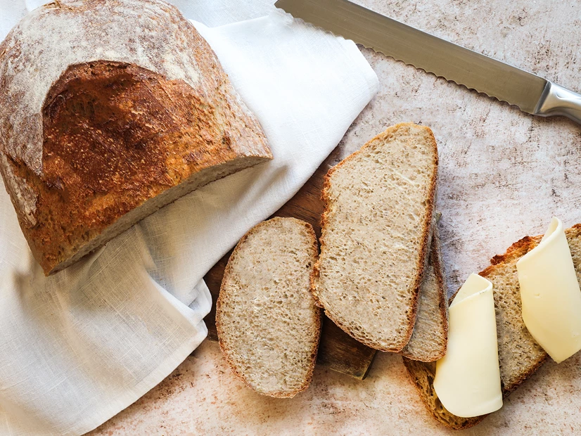 Com uma faca, dê um corte longitudinal na superfície do pão. Leve o pão ao forno cerca de 30 minutos ou até a crosta ficar dourada e o pão cozido por dentro.