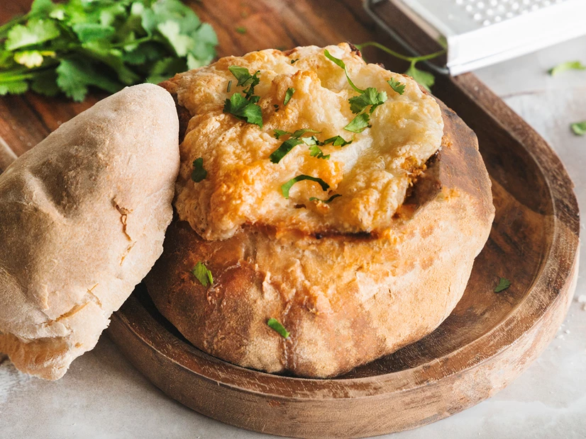 Corte uma tampa no pão e retire o miolo, preparando uma cavidade para rechear. Recheie o pão com a mistura de bacalhau e leve ao forno a gratinar cerca de 20-30 minutos.