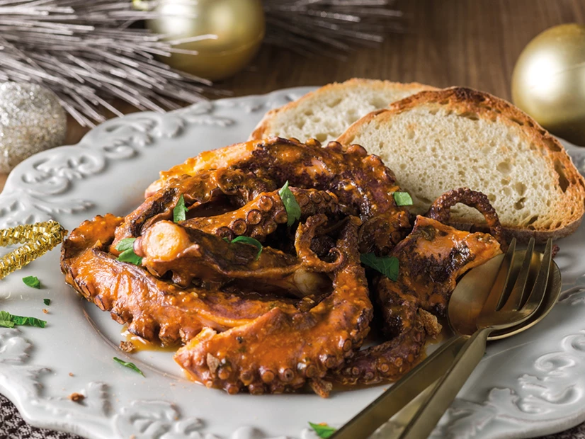 Coloque no copo o polvo inteiro, a cebola e a água. Coza durante 28 minutos a 120ºC na velocidade 1 com a Rotação Inversa.