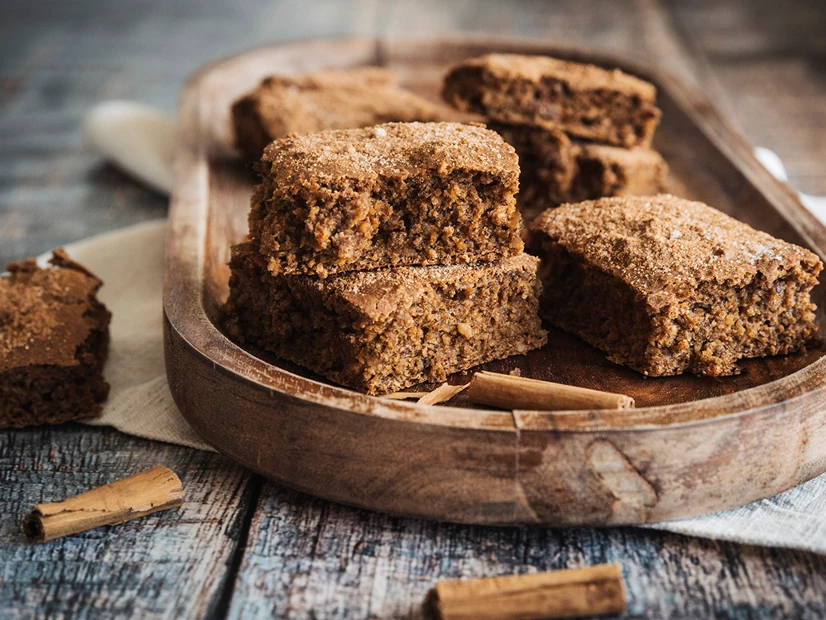 Retire do forno e polvilhe o bolo com uma mistura de açúcar com canela em pó.