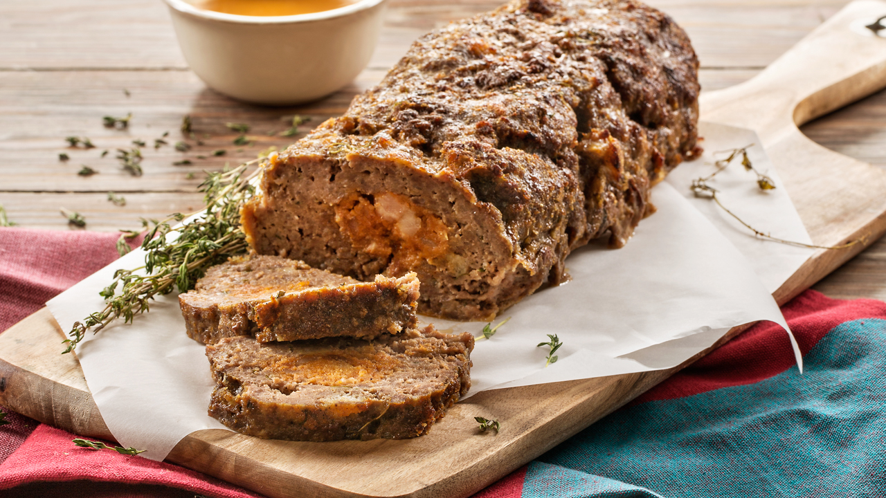 Unte um pedaço grande de papel de alumínio com um pouco de azeite, disponha a carne sobre o mesmo e coloque a farinheira, sem pele, no centro. Forme um rolo e aperte bem.