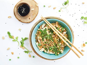 Envolva os zoodles no pesto e divida-os por 4 pratos.